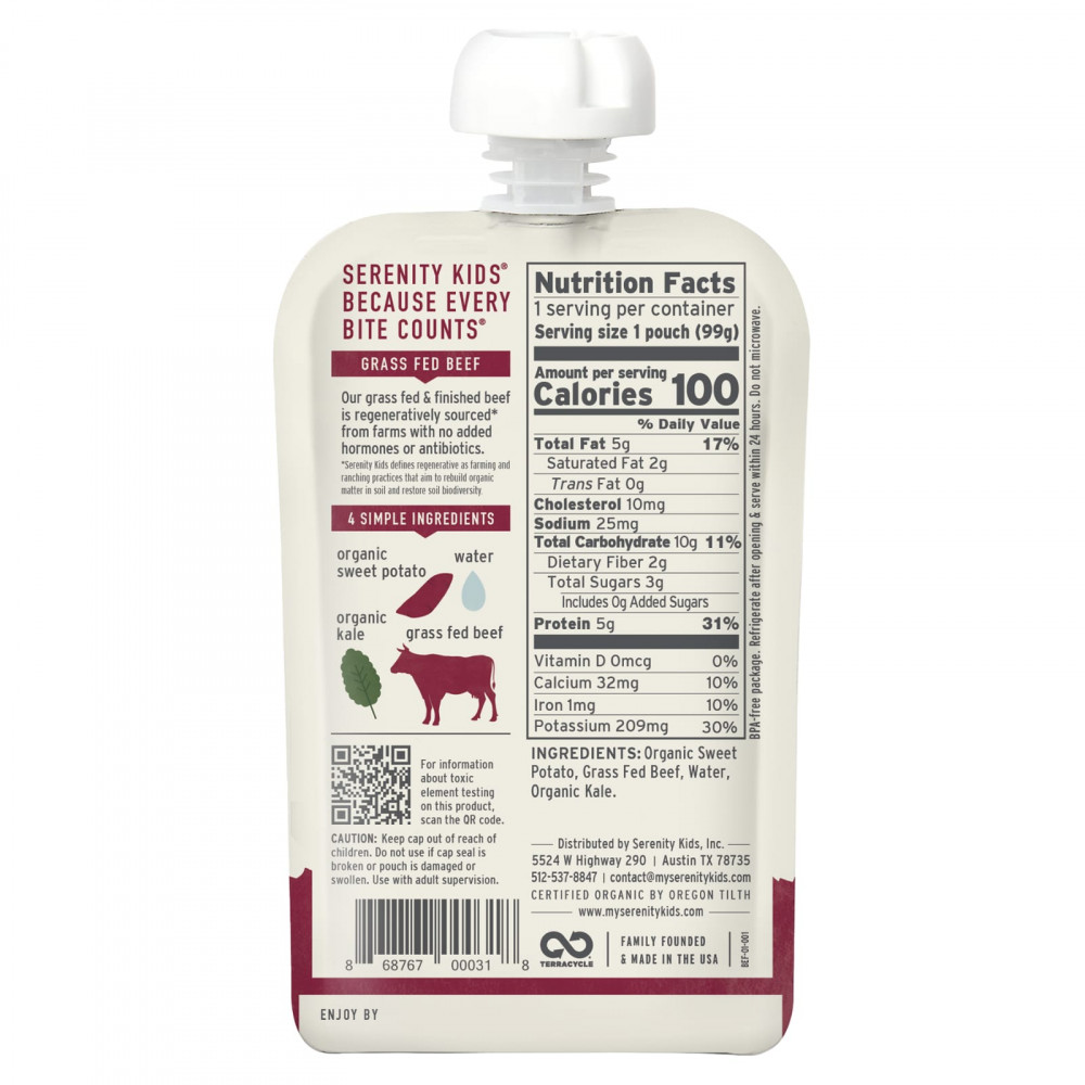 Органический батат, говядина травяного откорма, вода, органическая листовая капуста.