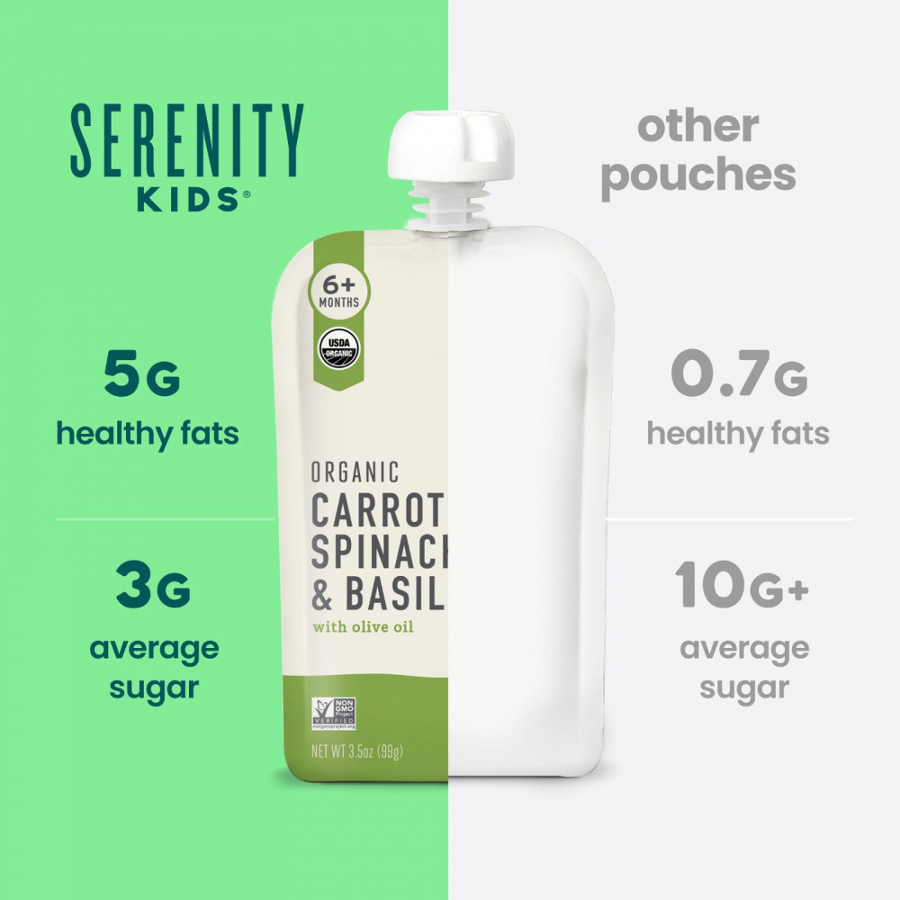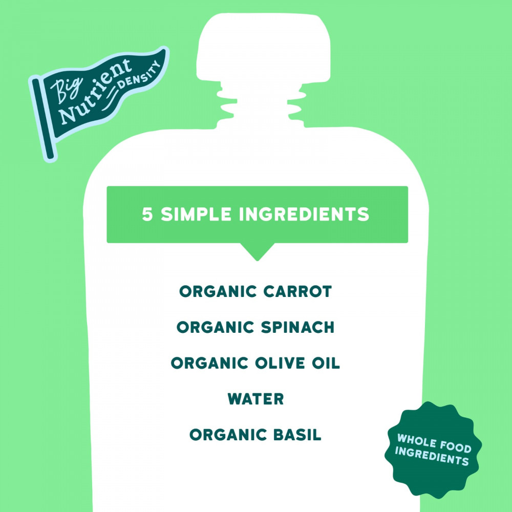Органическая морковь, органический шпинат, вода, органическое оливковое масло, органический базилик.