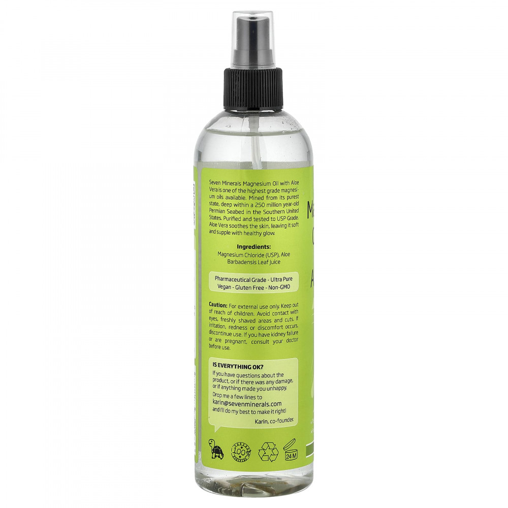 Магниевое масло Seven Minerals с алоэ вера — одно из лучших магниевых масел. Добыто в самом чистом виде на глубине пермского морского дна, возраст которого 250 миллионов лет, на юге США. Очищенное и протестированное по классу USP алоэ вера успокаивает кожу, делая ее мягкой, эластичной и со здоровым сиянием.