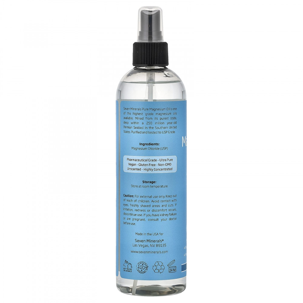 Чистое магниевое масло Seven Minerals - одно из масел магния высочайшего качества. Добыто из чистого состояния на глубине пермского морского дна возрастом 250 миллионов лет на юге США. Очищено и протестировано на соответствие требованиям USP.
