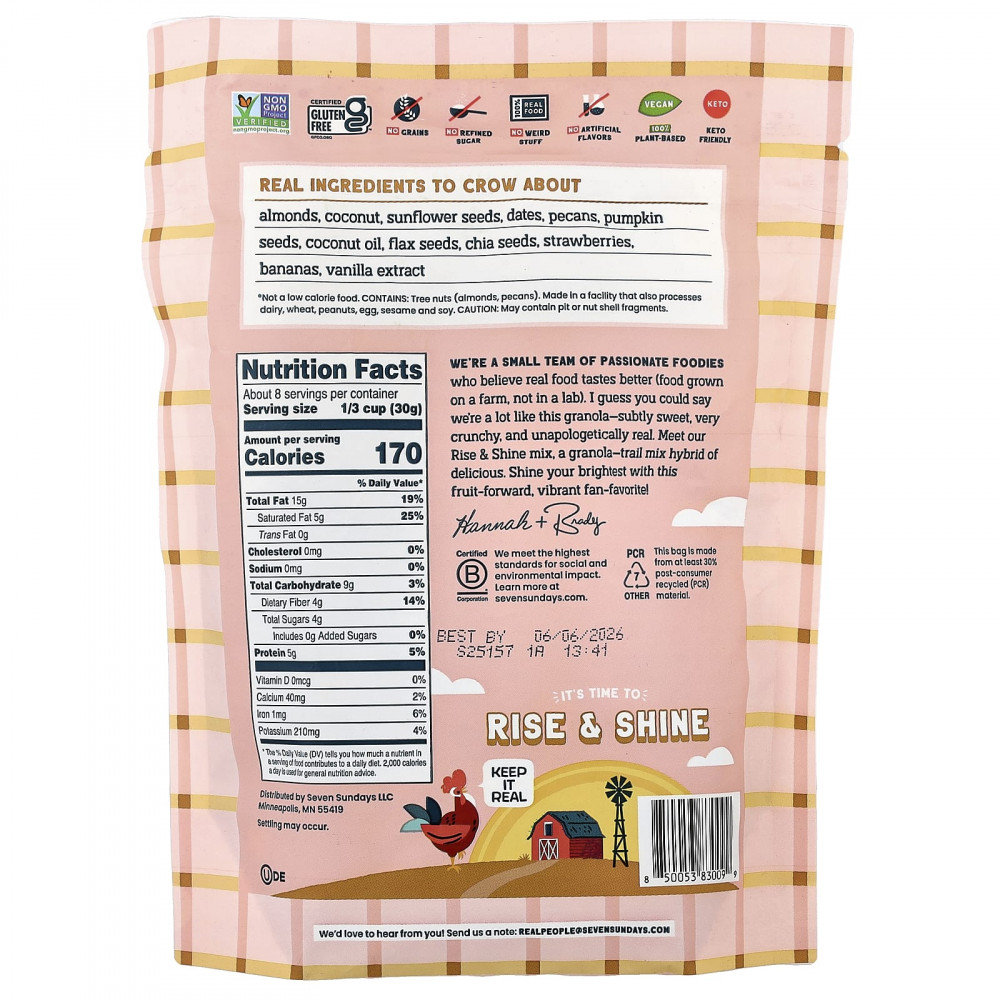 Мы - небольшая команда вегетарианцев, которые уверены, что натуральная еда (продукты, выращенные на ферме, а не в лаборатории) вкуснее. Полагаю, вы могли бы сказать, что мы очень похожи на эту гранолу - слегка сладкая, очень хрустящая и невероятно натуральная. Познакомьтесь с нашей смесью Rise & Shine - вкусной смесью из гранолы. Сияйте с помощью этого фруктового и яркого напитка, любимого поклонниками!