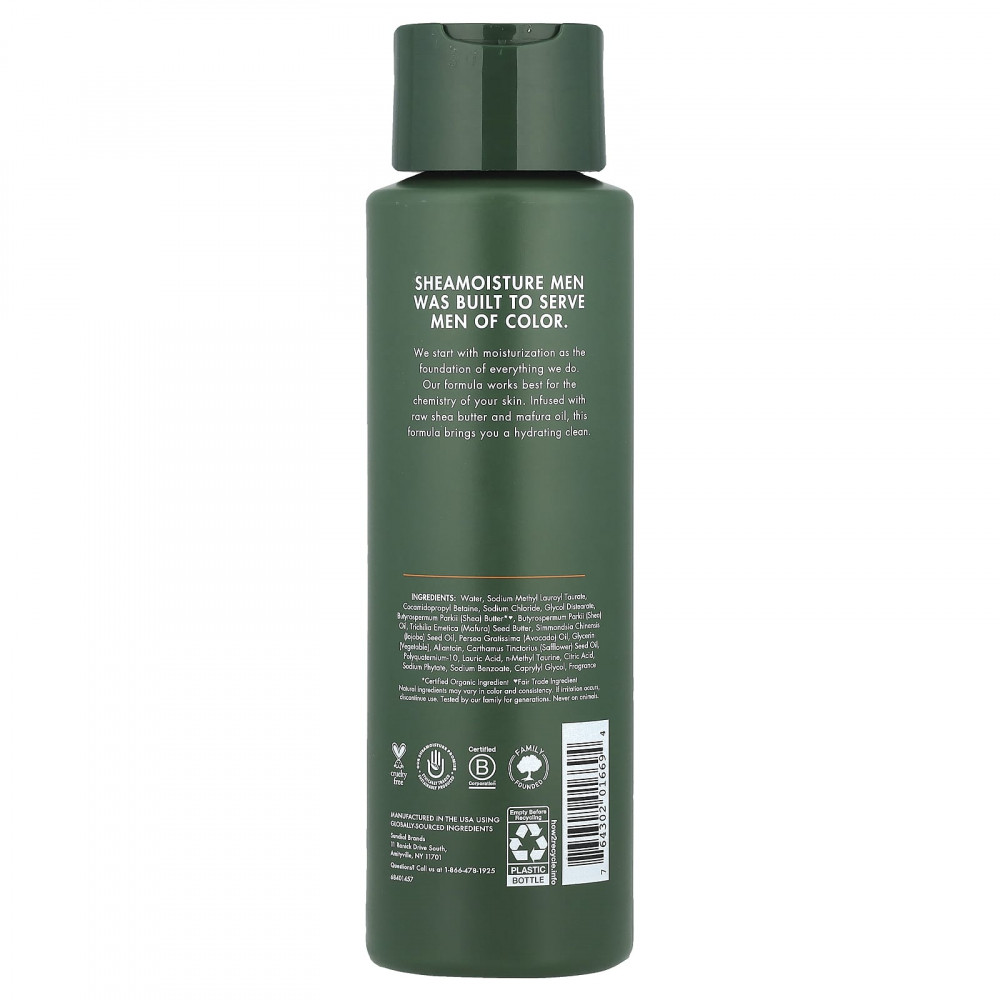 SheaMoisture Men создан для цветных мужчин. Мы начинаем с увлажнения как основы всего, что мы делаем. Наша формула лучше всего подходит для химического состава вашей кожи. Эта формула, содержащая необработанное масло ши и масло мафуры, обеспечивает увлажняющее очищение.