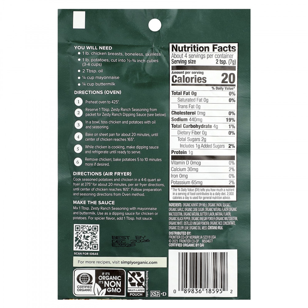 Этот пакетик с приправой для листовых сковородок Zesty Ranch позволяет приготовить два продукта в одном пакетике: искусно приправленную курицу и картофель, а также сливочный соус ранчо, который отлично сочетается с обоими блюдами. Смелые органические травы и специи, такие как укроп, лук и листья сельдерея, в сочетании образуют традиционную основу для ранчо, а уксус и чеснок придают пикантность. Это противовесовое средство для приготовления блюд идеально подходит для приготовления курицы и картофеля. Смешайте сметану и пахту с частью приправы, чтобы получить пикантный соус для окунания, который можно подавать с курицей и картофелем.