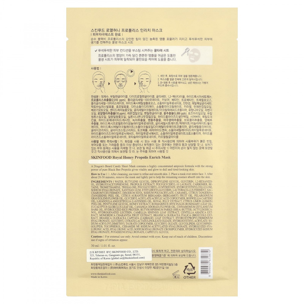 Конфеты из тканевой маски с бородой Дракона содержат высококонцентрированный состав ампулы с сильным действием чистого прополиса черной пчелы, который придает жизненную силу и сияние тусклой и уставшей коже.