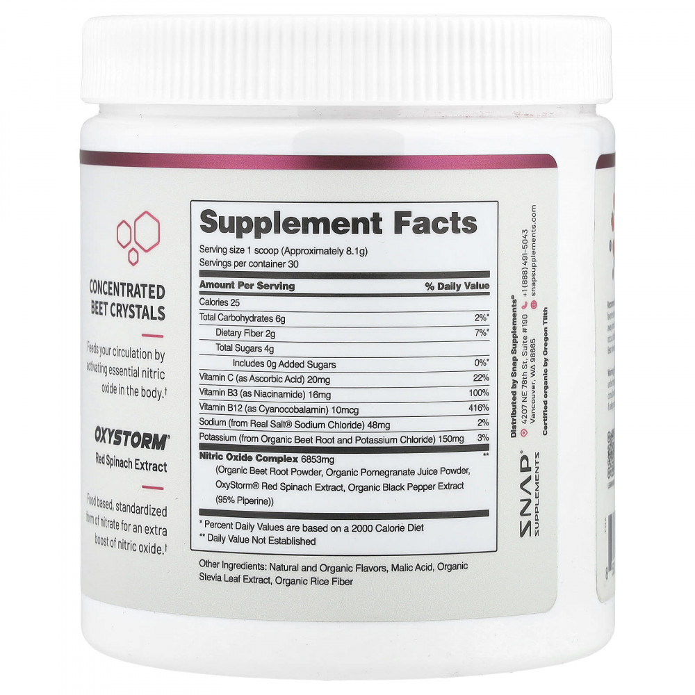 | Комплекс оксида азота (Порошок из органической свеклы, порошок из органического гранатового сока, экстракт красного шпината OxyStorm®, экстракт черного перца BioPerine®) | 6853 мг | ** |