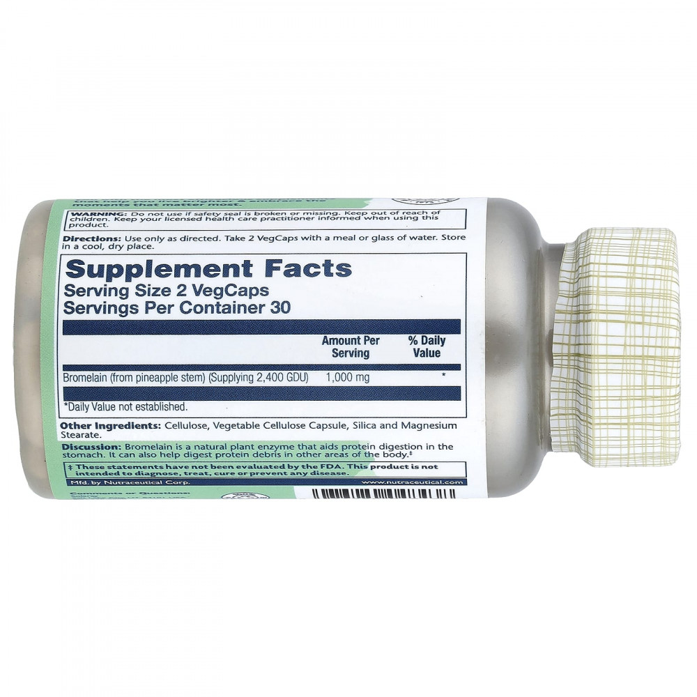 Описание. Бромелаин - это натуральный растительный фермент, который способствует перевариванию белков в желудке. Он также может помочь переваривать белковые продукты в других участках тела.