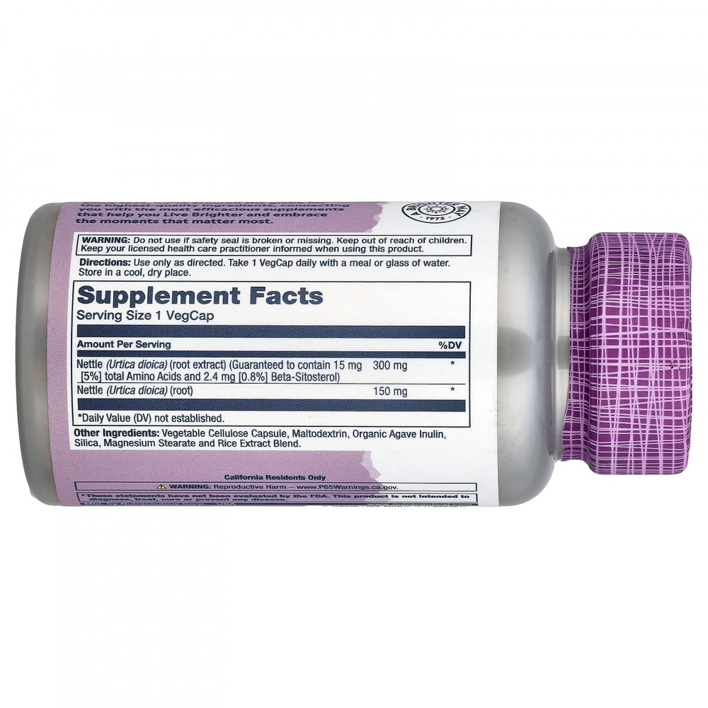 | Крапива двудомная (Urtica dioica) (экстракт корня) (гарантированно содержит 15 мг (5%) всего аминокислот и 2,4 мг (0,8%) бета-ситостерола) | 300 мг | * |