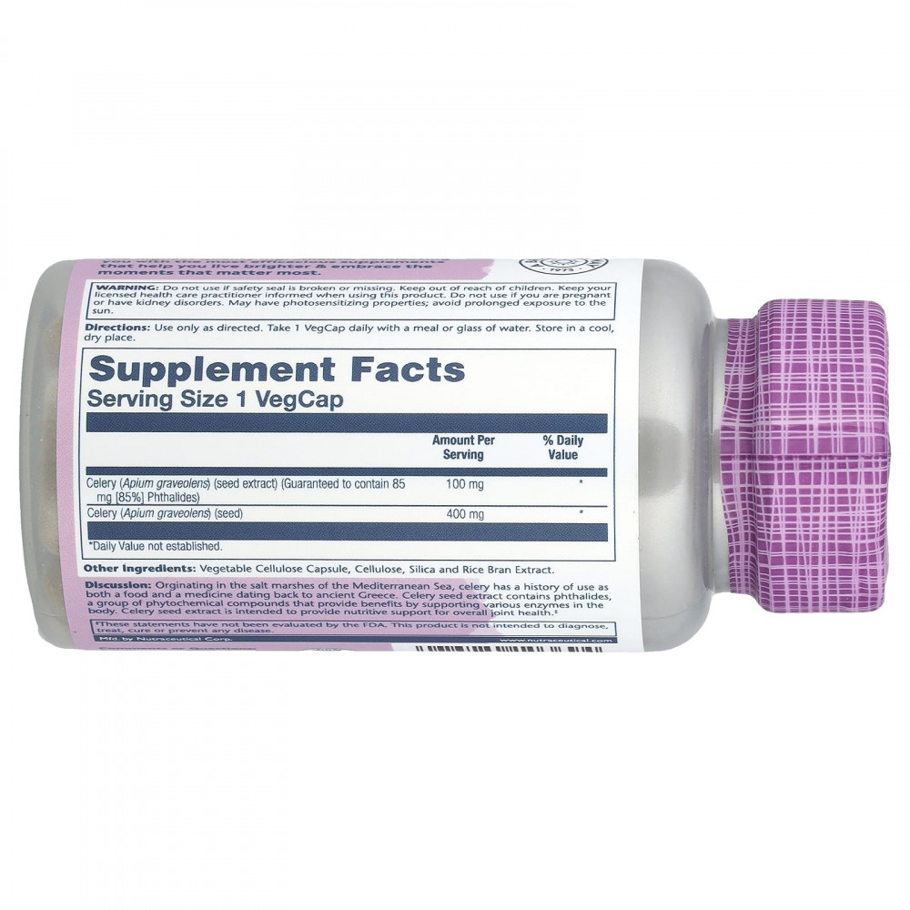 Описание. Сельдерей, произрастающий на солончаках Средиземного моря, веками использовался как в качестве продукта питания, так и в качестве средства, начиная еще с Древней Греции. Экстракт семян сельдерея содержит фталиды, группу фитохимических соединений, которые поддерживают выработку различных ферментов в организме. Экстракт семян сельдерея предназначен для обеспечения питательной поддержки общего здоровья суставов.