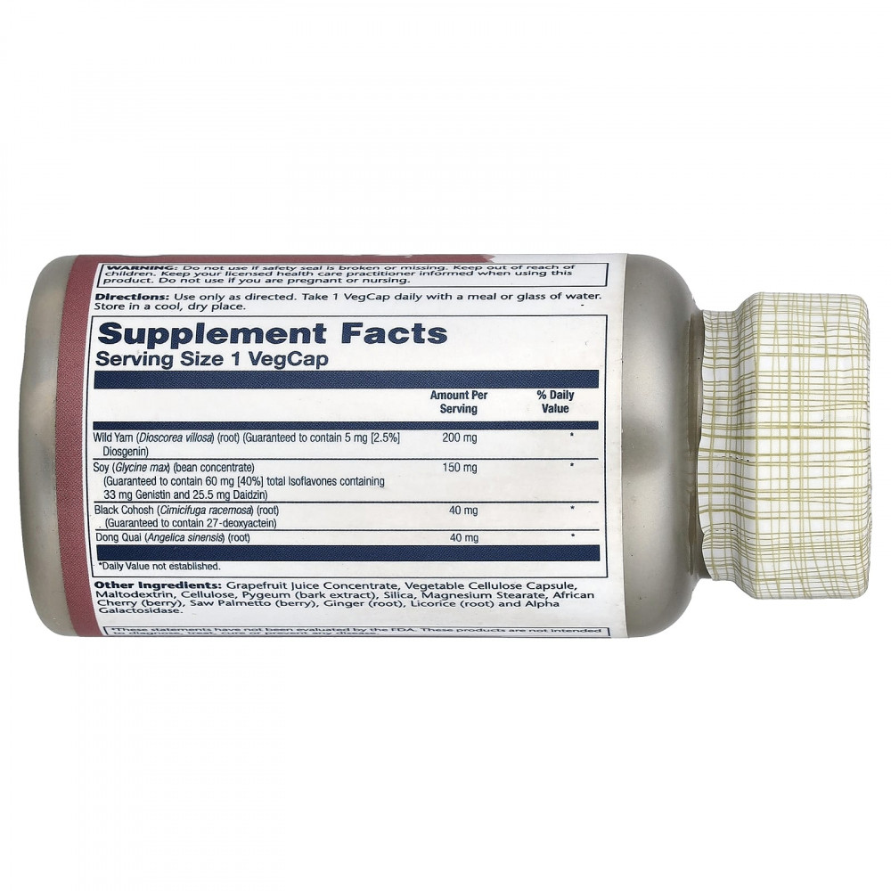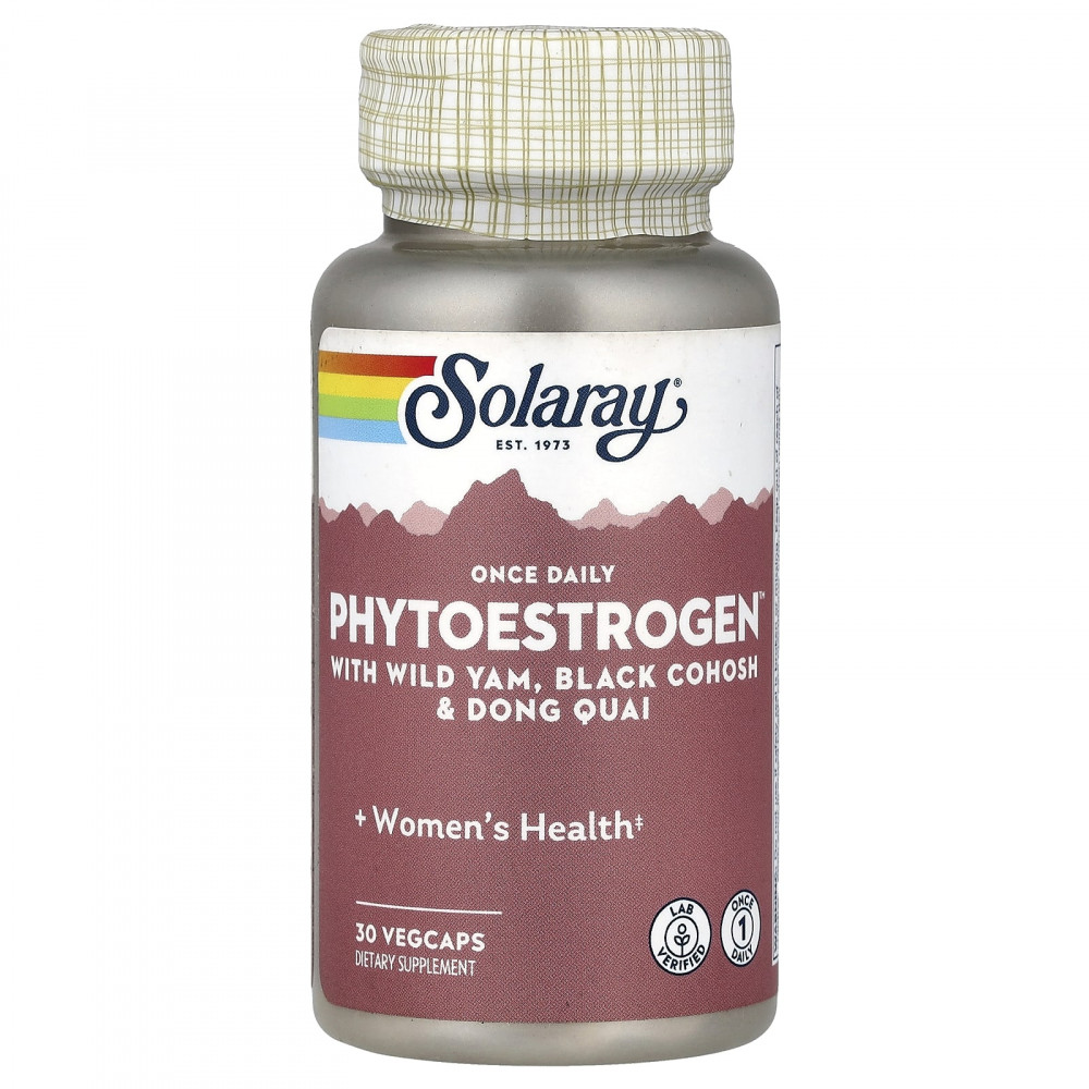 Solaray PhytoEstrogen разработан на основе сои без ГМО, дикого ямса, воронца кистевидного и дягиля лекарственного - растений, содержащих фитоэстрогены. Поскольку мы стремимся создавать качественные добавки, которые работают эффективнее, наша эффективная добавка для поддержки при менопаузе гарантирует 2,5% диосгенина - фитоэстрогена дикого ямса, который может преобразовываться в организме в прогестерон, а также в 3% изофлавонов. Это поддержка, которой вы можете доверять!