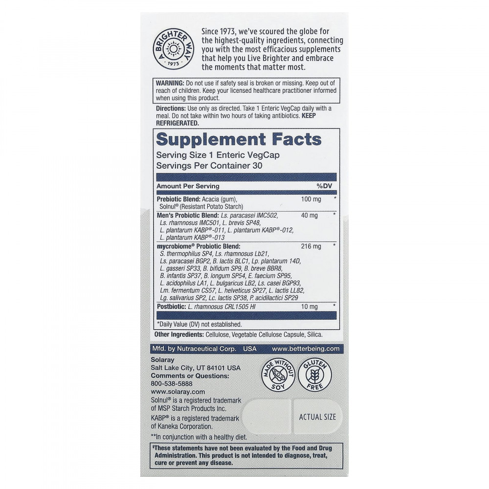 | Смесь пробиотиков для мужчин: Ls. paracasei IMC502, Ls. rhamnosus IMC501, L. brevis SP48, L. plantarum KABP®-011, L. plantarum KABP®-012, L. plantarum KABP®-013 | 40 мг | * |