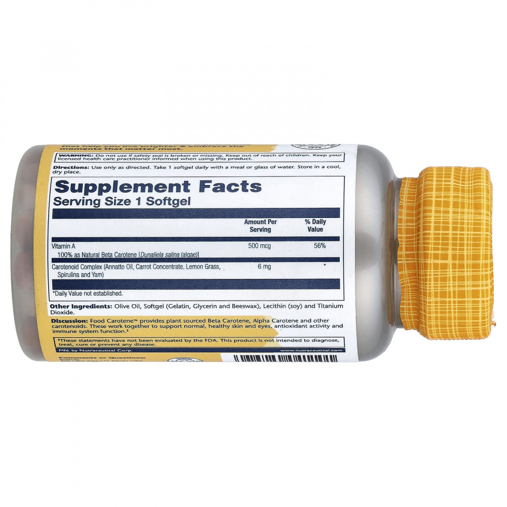 Описание. Food Carotene™ содержит бета-каротин, альфа-каротин и другие каротиноиды растительного происхождения. Вместе они поддерживают здоровье кожи и глаз, антиоксидантную активность и работу иммунной системы.