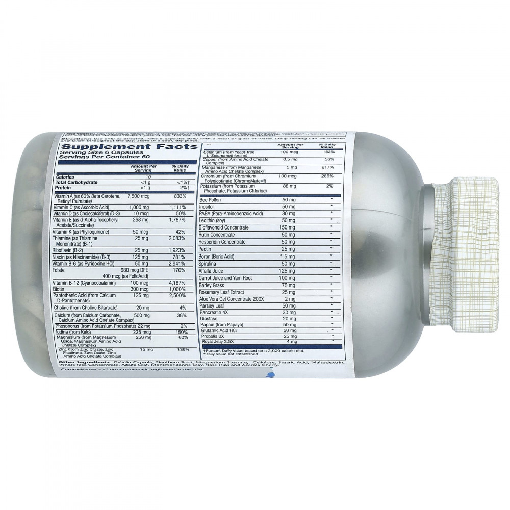 Наш эффективный мультивитаминный комплекс без железа содержит 100% суточной нормы или более витаминов A, C, D, E и B, а также хелатные комплексы железа, кальция, магния и цинка.Мы добавили простые, выращенные на солнце питательные вещества на основе зеленых суперфудов и трав, в том числе спирулину, люцерну, ростки ячменя и многое другое.Наконец, наши мощные пищеварительные ферменты предназначены для поддержания здоровья кишечника и помогают организму усваивать и использовать все полезные питательные вещества.