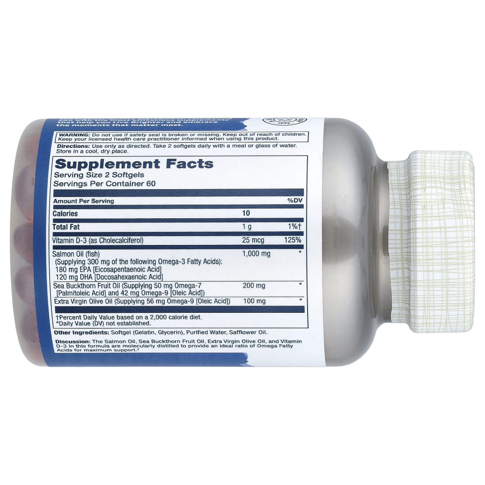 Обсуждение: лососевый жир, облепиховое масло, нерафинированное оливковое масло высшего качества и витамин D3 в этой формуле подвергаются молекулярной дистилляции, чтобы обеспечить идеальное соотношение омега жирных кислот для максимальной поддержки.