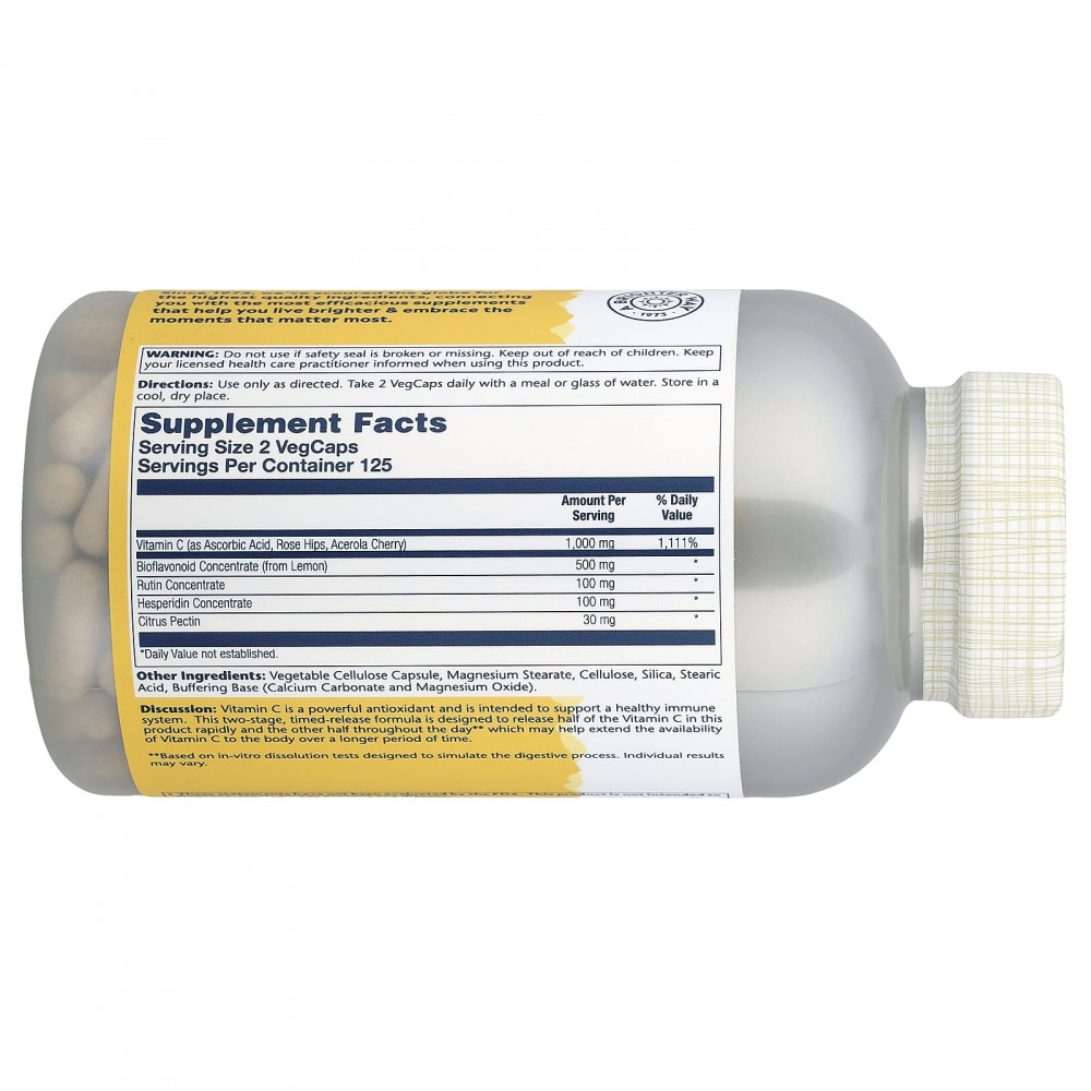 Описание. Витамин C — это мощный антиоксидант, который предназначен для поддержки здоровья иммунной системы. Это средство с двухэтапным медленным высвобождением разработано так, чтобы первая половина содержащегося в этом продукте витамина С высвобождалась быстро, а вторая половина — в течение дня**. Это может увеличить доступность витамина С для организма в течение более длительного периода времени.