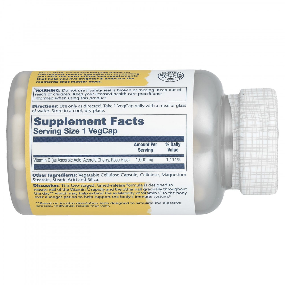 Описание. Это средство с двухэтапным медленным высвобождением разработано так, чтобы первая половина витамина С высвобождалась быстро, а вторая половина — постепенно в течение дня**. Это может увеличить доступность витамина С для организма в течение более длительного периода и поддерживать здоровое состояние организма. иммунную систему.