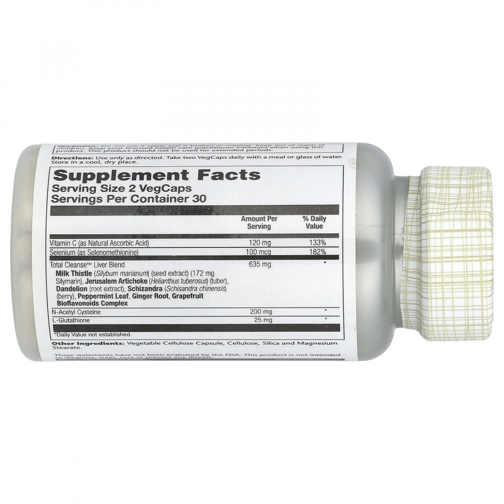 | Смесь для печени Total Cleanse™ расторопша (Silybum marianum) (экстракт семян) (172 мг силимарина), артишок (Helianthus Tuberosus) (клубень), одуванчик (экстракт корня), лимонник (Schisandra chinensis) (ягоды), листья перечной мяты, корень имбиря, комплекс биофлавоноидов из грейпфрута | 635 мг | * |
