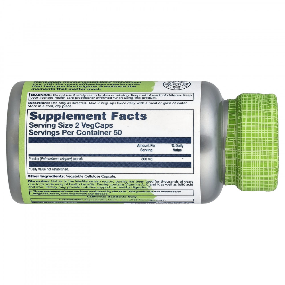 Описание. Петрушка произрастает в Средиземноморском регионе и используется на протяжении тысячелетий благодаря ее широким полезным для здоровья свойствам. Петрушка содержит витамины A, C и K, а также фолиевую кислоту и железо. Петрушка может оказывать питательную поддержку для здорового пищеварения.
