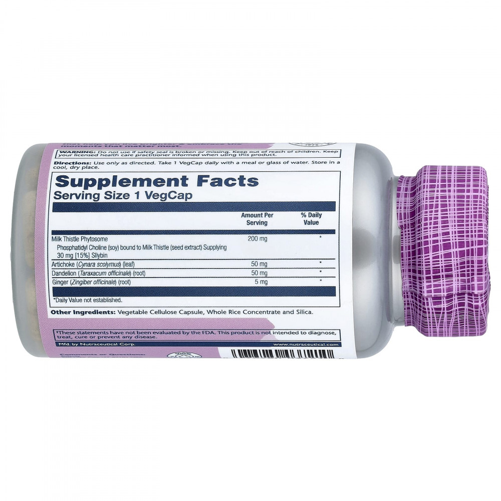 | Фитосома расторопши Фосфатидилхолин (из сои), связанный с расторопшей (экстракт семян), содержит 30 мг (15%) силибина | 200 мг | * |