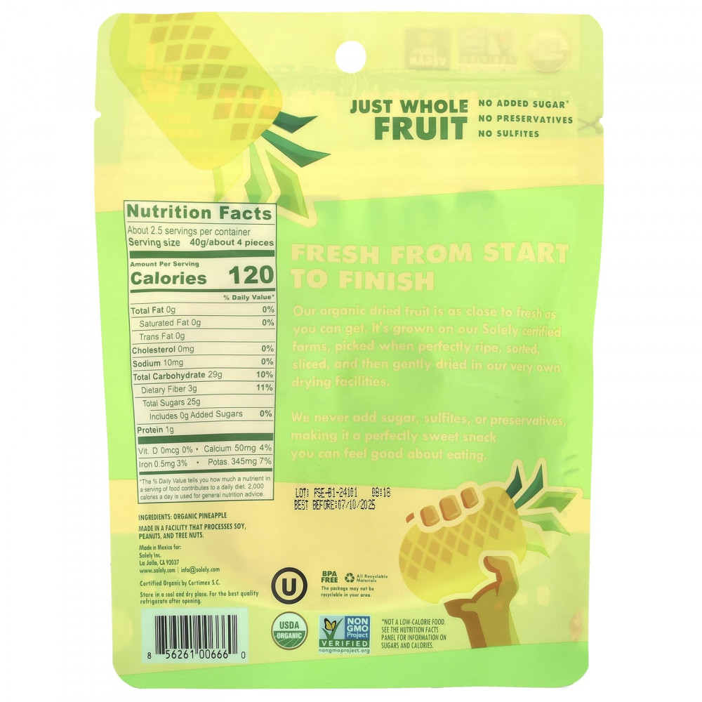 Мы никогда не добавляем сахар, сульфиты или консерванты, что делает его очень сладким перекусом, который вы можете съесть с удовольствием.