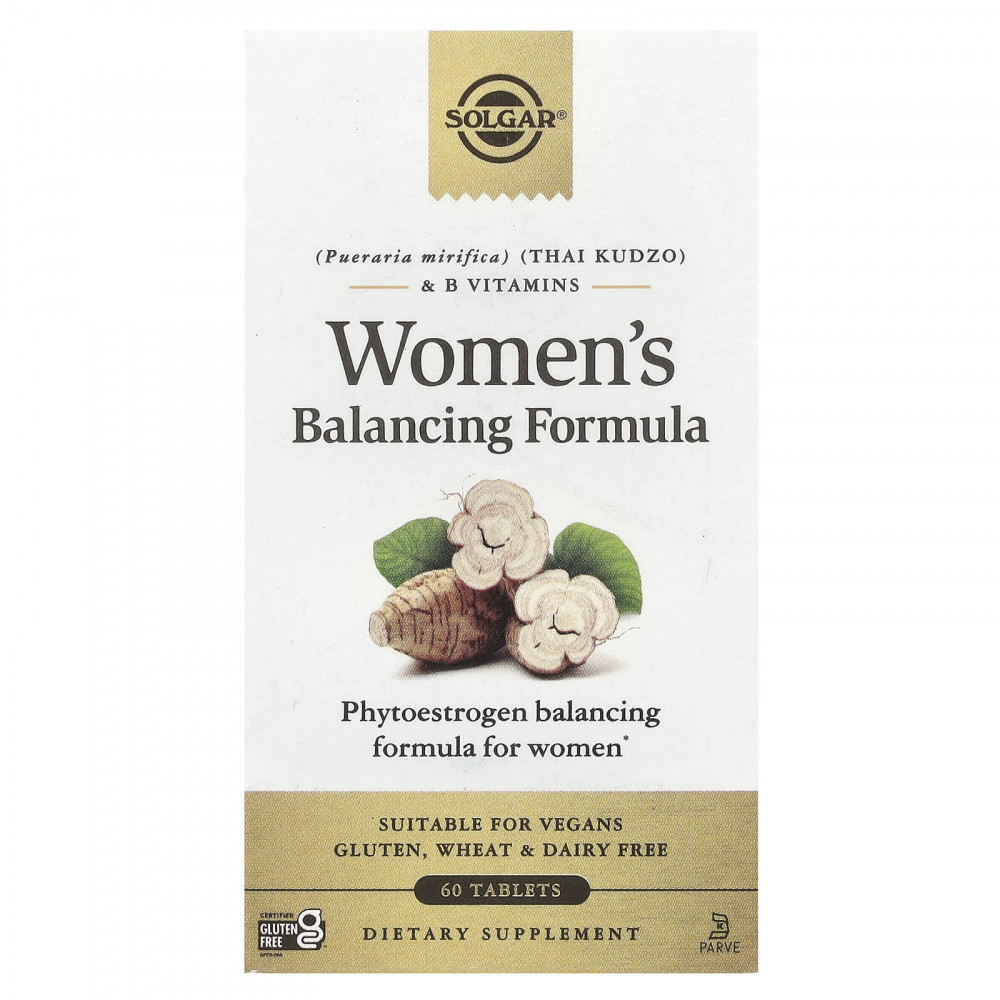 Средство для восстановления баланса для женщин от Solgar® включает экстракт тайского кудзу (Pueraria mirifica), стандартизированный до содержания 16 мкг в одной таблетке фитоэстрогена мироэстрола, который представляет собой растительное соединение, имитирующее эстроген в организме.