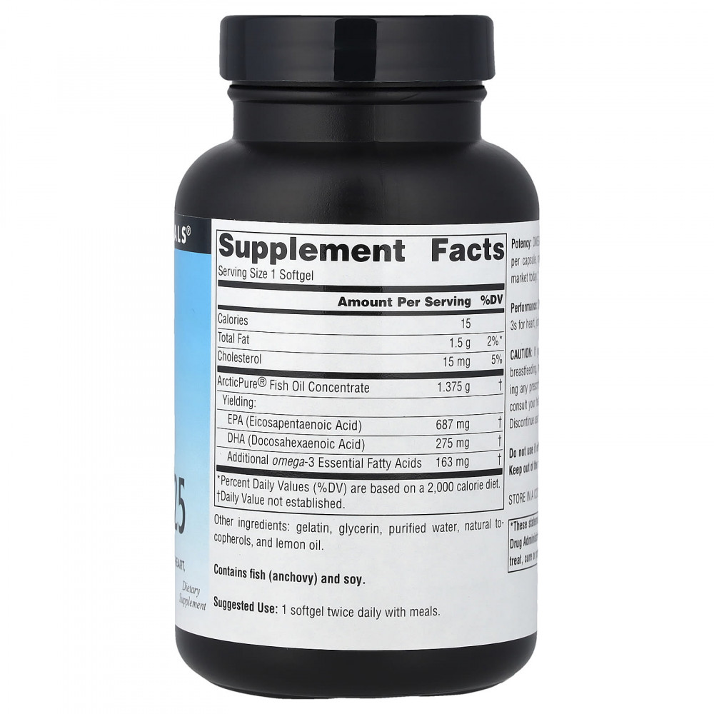 Эффективность: Омега-3 1125 содержит омега-3 высочайшего качества для здоровья сердца, суставов, иммунной системы и мозга.