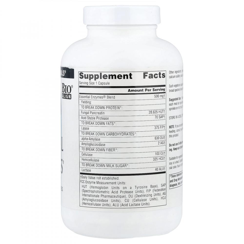 С возрастом может снижаться секреция соляной кислоты и пищеварительных ферментов. Добавьте к этому множество дополнительных факторов — неправильное питание, неправильное пережевывание, «еду на вынос» и чрезмерное потребление алкоголя, — которые оказывают давление на процесс пищеварения. Essential Enzyme™ — это добавка Bio-Aligned Formula®, которая содержит широкий спектр ферментов, расщепляющих белки, жиры, молочный сахар, клетчатку и углеводы в широком диапазоне уровней pH. Он способствует естественному процессу пищеварения в организме, помогая максимально использовать организм питательных веществ из рациона, поддерживая комфортное пищеварение.