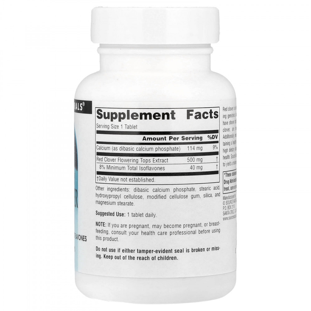 Красный клевер — это трава, которая содержит определённые изофлавоны, включая генистеин, даидзеин, биоханин и формононетин. Исследования показали, что эти фитоэстрогены, особенно из красного клевера, важны для поддержания здоровья женщин. Кроме того, исследования показывают, что красный клевер может поддерживать здоровье сердечно-сосудистой системы во время менопаузы. Высокое потребление изофлавонов с пищей также может способствовать здоровью скелета. Экстракт красного клевера от Source Naturals стандартизирован таким образом, чтобы содержание изофлавонов в одной порции составляло не менее 40 мг.
