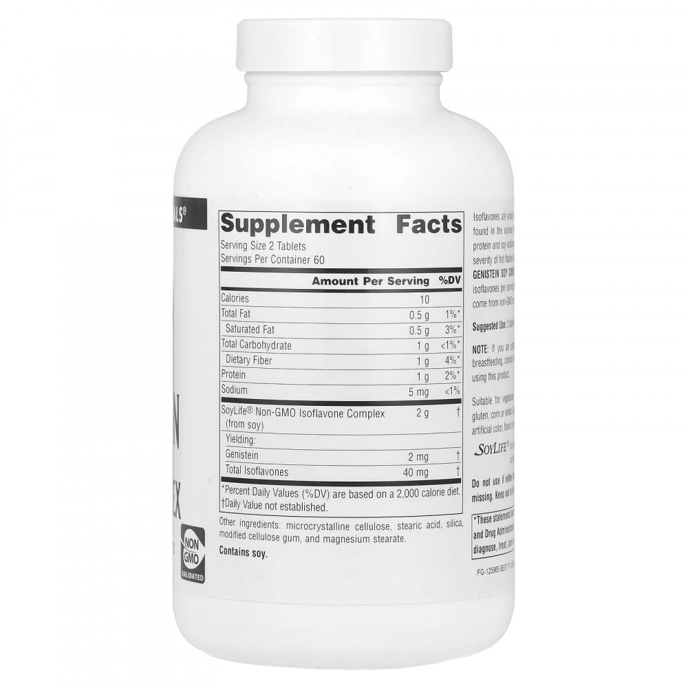 Изофлавоны — это уникальные полифенольные соединения, которые содержатся в сое. Исследования показывают, что соевый белок и изофлавоны сои могут снижать частоту и тяжесть приливов во время менопаузы. Соевый комплекс с генистеином от Source Naturals содержит 40 мг изофлавонов SoyLife® на порцию, которые природного происхождения и получены из сои без ГМО.
