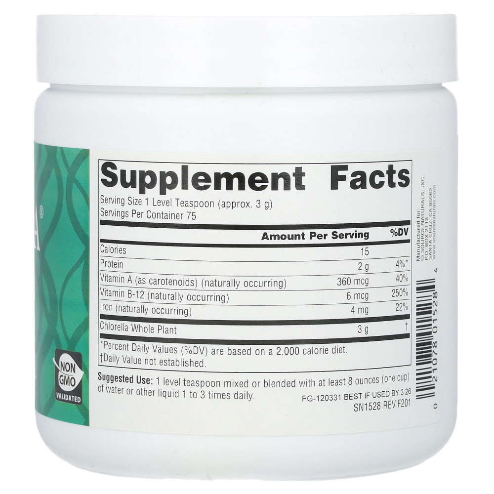 Yaeyama Chlorella® от Source Naturals содержит пресноводную хлореллу без ГМО, выращенную на коралловом рифе острова Исигаки, Япония. Этот суперфуд представляет собой разновидность зеленых водорослей и отличный источник вегетарианского витамина B12. Кроме того, это хороший источник железа и витамина A, а также полноценный растительный белок. Хлорелла получает зеленый цвет от растительного пигмента хлорофилла. Предварительные данные, включая некоторые исследования на людях, позволяют предположить, что хлорелла может поддерживать здоровье печени и иммунной системы.