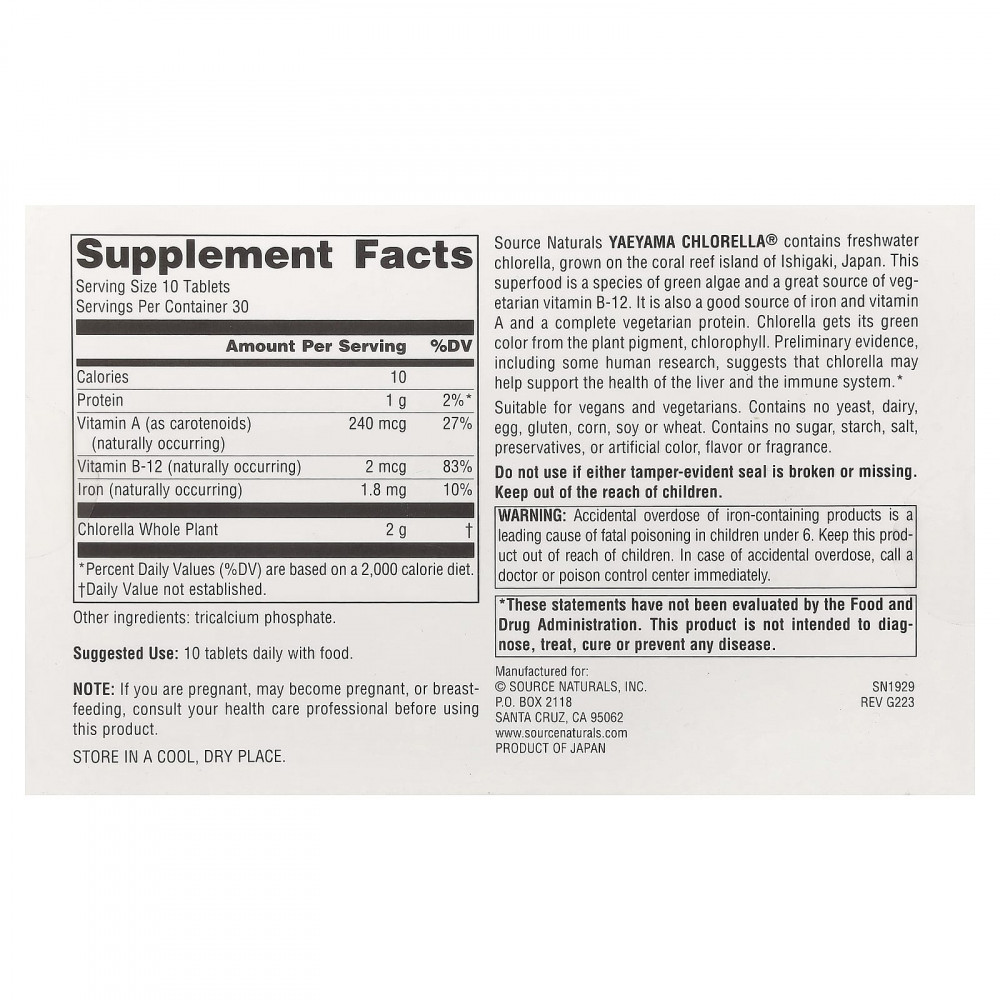 YAEYAMA CHLORELLA® от Source Naturals содержит пресноводную хлореллу, выращенную на коралловом рифе острова Исигаки в Японии. Этот суперфуд представляет собой разновидность зеленых водорослей и отличный источник вегетарианского витамина B12. Кроме того, это хороший источник железа и витамина A, а также полноценный растительный белок. Хлорелла получает зеленый цвет от растительного пигмента хлорофилла. Предварительные данные, включая некоторые исследования на людях, позволяют предположить, что хлорелла может поддерживать здоровье печени и иммунной системы.