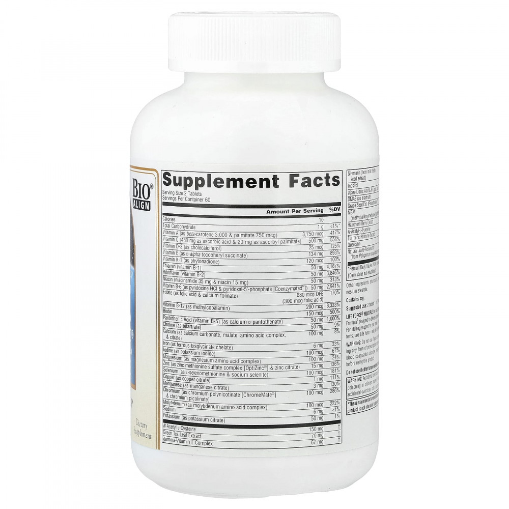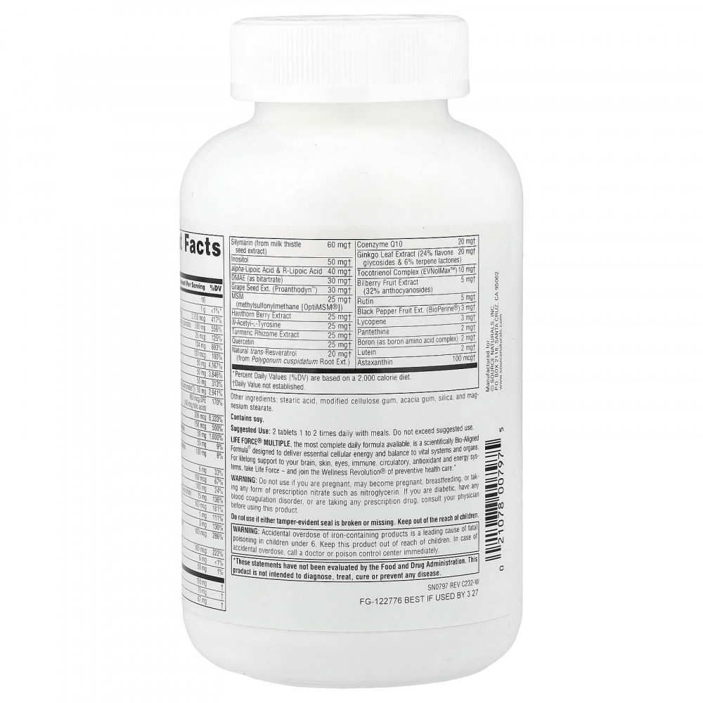 Life Force® Multi — наиболее комплексная формула для ежедневного приема. Она представляет собой научно исследованную формулу Bio-Aligned Formula®, разработанную для обеспечения необходимой клеточной энергии и баланса жизненно важных систем и органов. Для поддержки здоровья мозга, кожи, глаз, иммунной, кровеносной, антиоксидантной и энергетической систем на протяжении всей жизни принимайте Life Force и присоединяйтесь к Wellness Revolution® в области профилактики заболеваний.