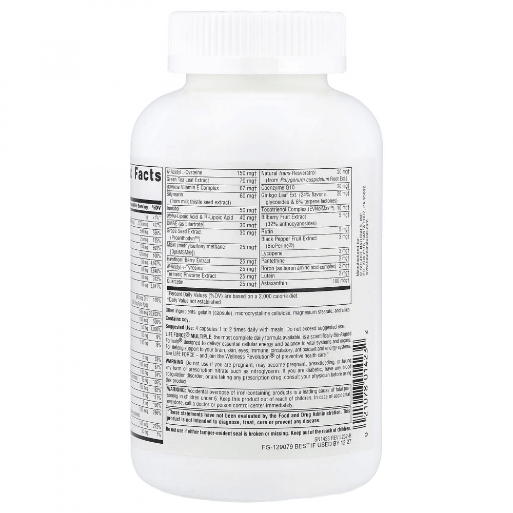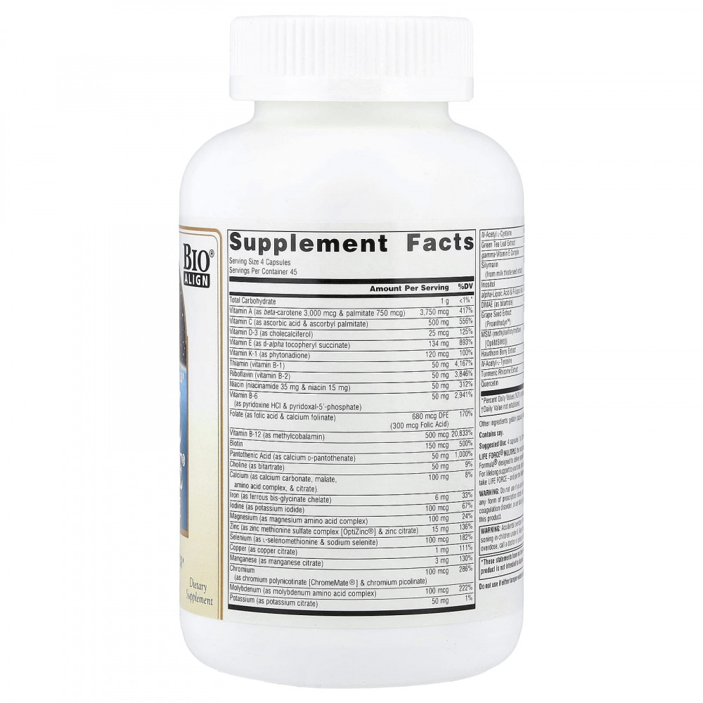 Life Force® Multi — наиболее комплексная формула для ежедневного приема, разработанная на основе научных исследований Bio-Aligned Formula®, которая обеспечивает необходимую клеточную энергию и баланс жизненно важных систем и органов. Для поддержки здоровья мозга, кожи, глаз, иммунной, кровеносной, антиоксидантной и энергетической систем на протяжении всей жизни принимайте Life Force и присоединяйтесь к Wellness Revolution® в области профилактики заболеваний.