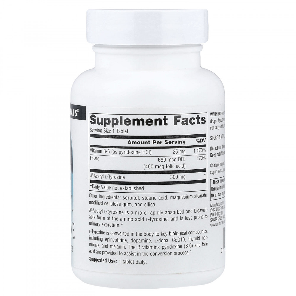 N-ацетил L-тирозин является более быстро абсорбируемой и биодоступной формой аминокислоты L-тирозина и менее склонен к выведению с мочой.