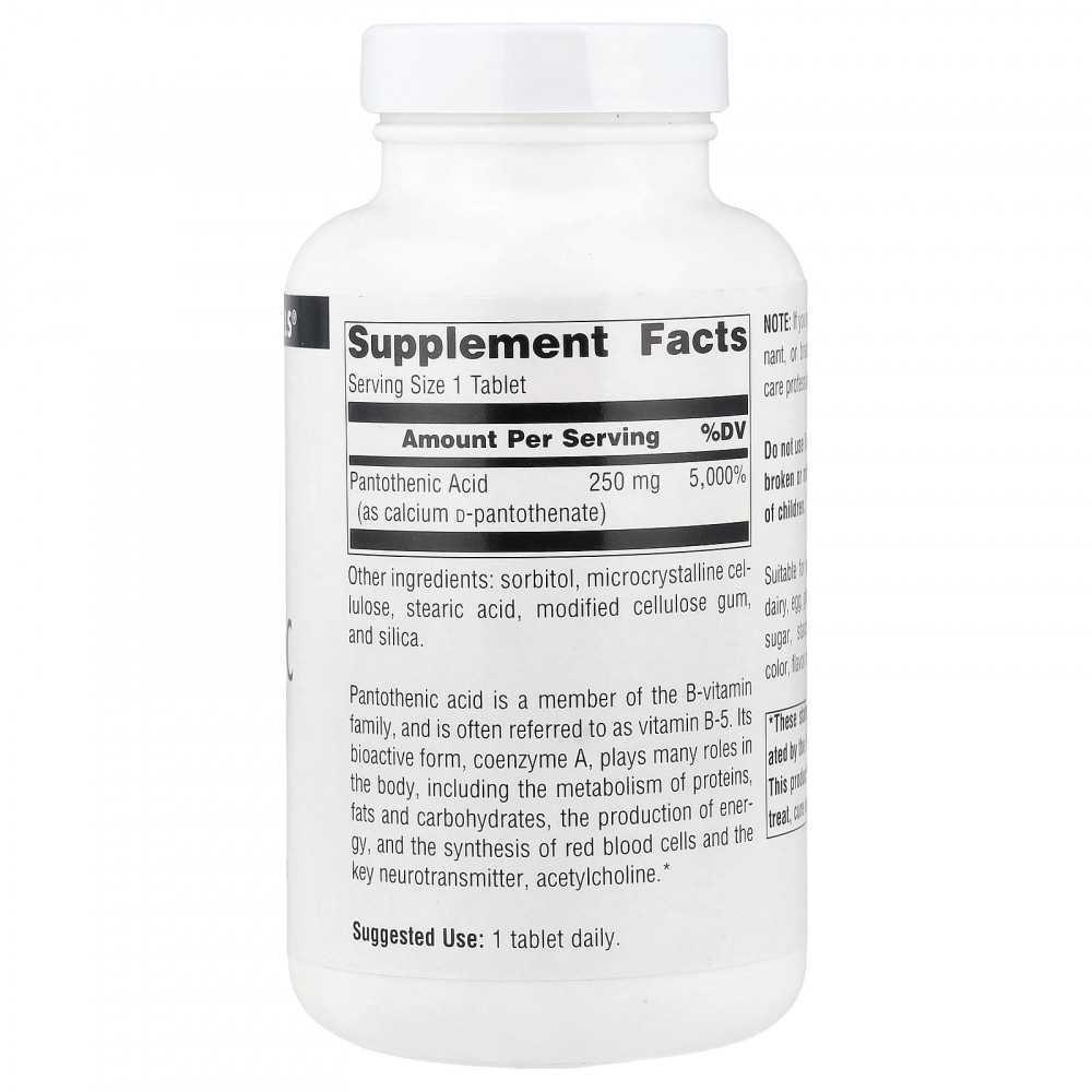 Пантотеновая кислота входит в семейство витаминов группы B, и ее часто называют витамином B5. Его биоактивная форма, коэнзим А, играет в организме множество функций, включая метаболизм белков, жиров и углеводов, выработку энергии, а также синтез эритроцитов и основного нейромедиатора — ацетилхолина.