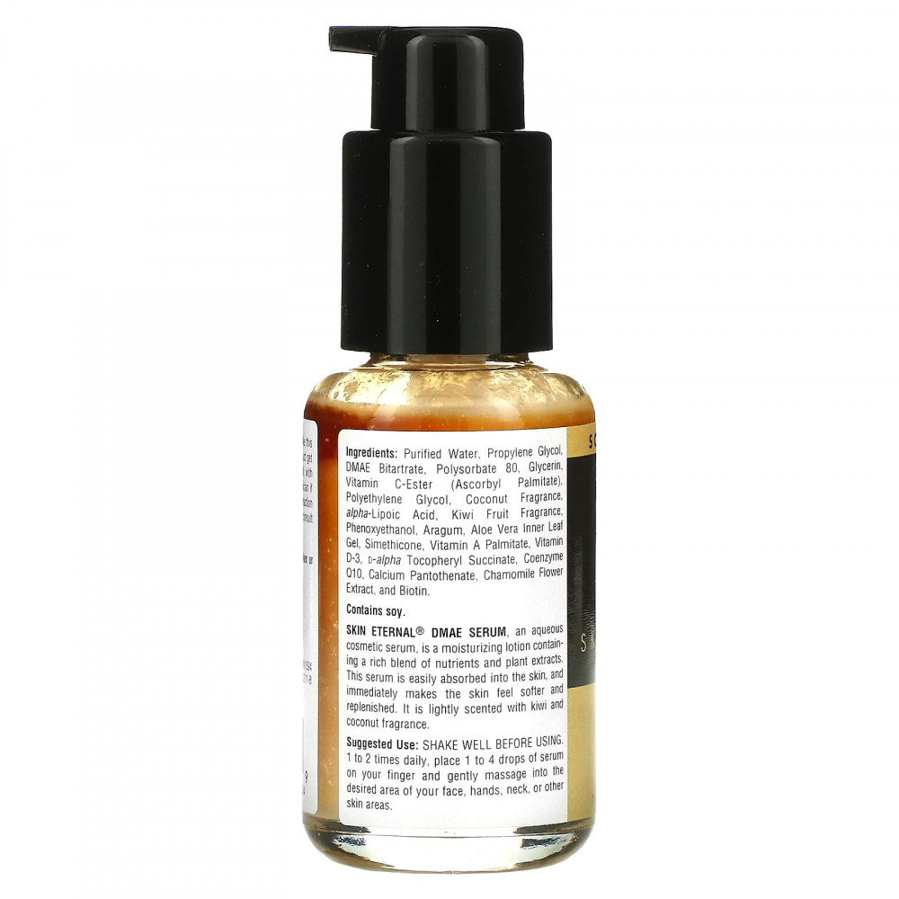 Косметическая сыворотка на водной основе с ДМАЭ Skin Eternal® — это увлажняющий лосьон, содержащий насыщенную смесь питательных веществ и растительных экстрактов. Сыворотка легко впитывается в кожу, немедленно придает ей мягкость и восстановление. Имеет легкий аромат киви и кокоса.