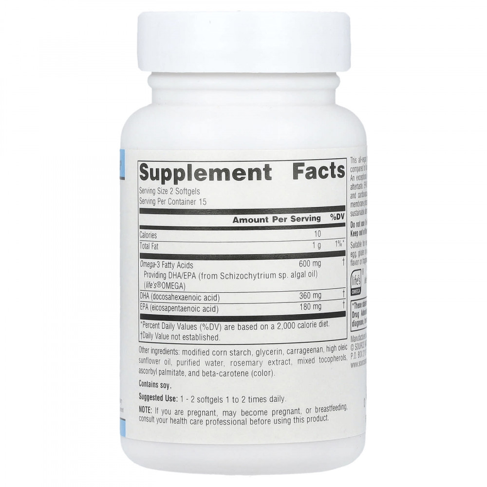 Этот полностью веганский продукт является более высоким источником ЭПК и ДГК по сравнению с льняным маслом или другими вегетарианскими источниками омега-3. Это исключительная вегетарианская альтернатива рыбьему жиру, которая не имеет рыбного послевкусия. ЭПК/ДГК поддерживает здоровое функционирование мозга и сердечно-сосудистой системы. ДГК является неотъемлемой частью фосфолипидов нервных мембран мозга. Изготовленный из водорослей, он также является устойчивой альтернативой чрезмерному вылову рыбы в океанах.