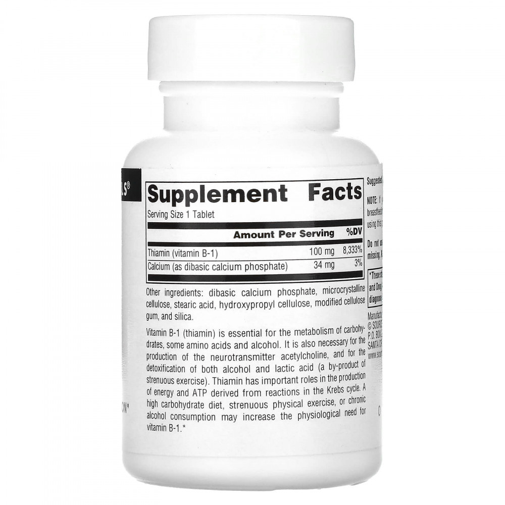 Витамин B1 (тиамин) необходим для метаболизма углеводов, некоторых аминокислот и спирта. Он также необходим для выработки нейромедиатора ацетилхолина и для детоксикации алкоголя и молочной кислоты (побочный продукт физических нагрузок). Тиамин играет важную роль в выработке энергии и АТФ, полученных в результате реакций цикла Кребса. Диета с высоким содержанием углеводов, физические нагрузки или регулярное употребление алкоголя могут увеличить физиологические потребности в витамине B1.