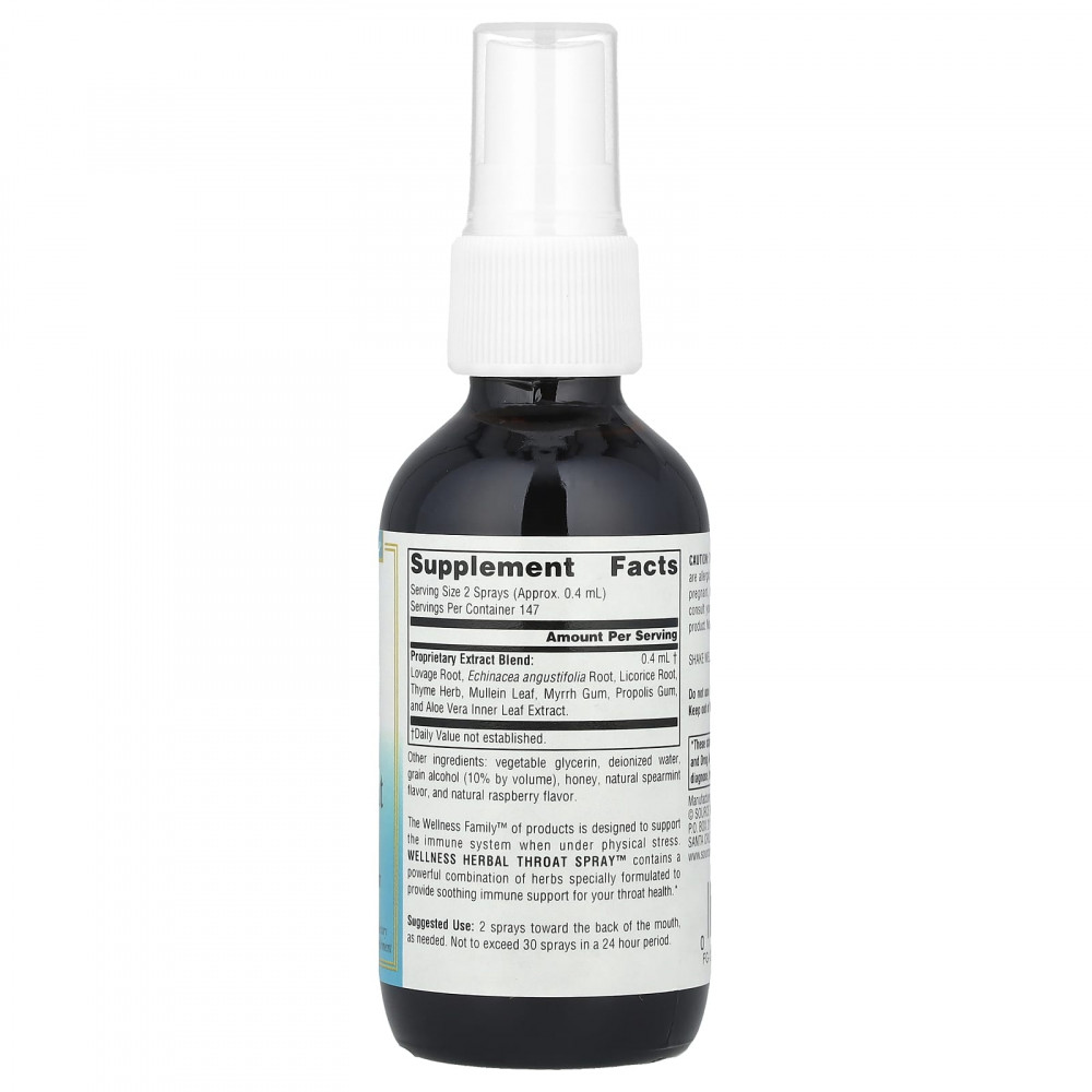Продукты Wellness Family ™ предназначены для поддержки иммунной системы при физических нагрузках. Спрей для горла Wellness Herbal Throat™ содержит эффективную комбинацию трав, специально разработанных для обеспечения успокаивающей и иммунной поддержки здоровья горла.
