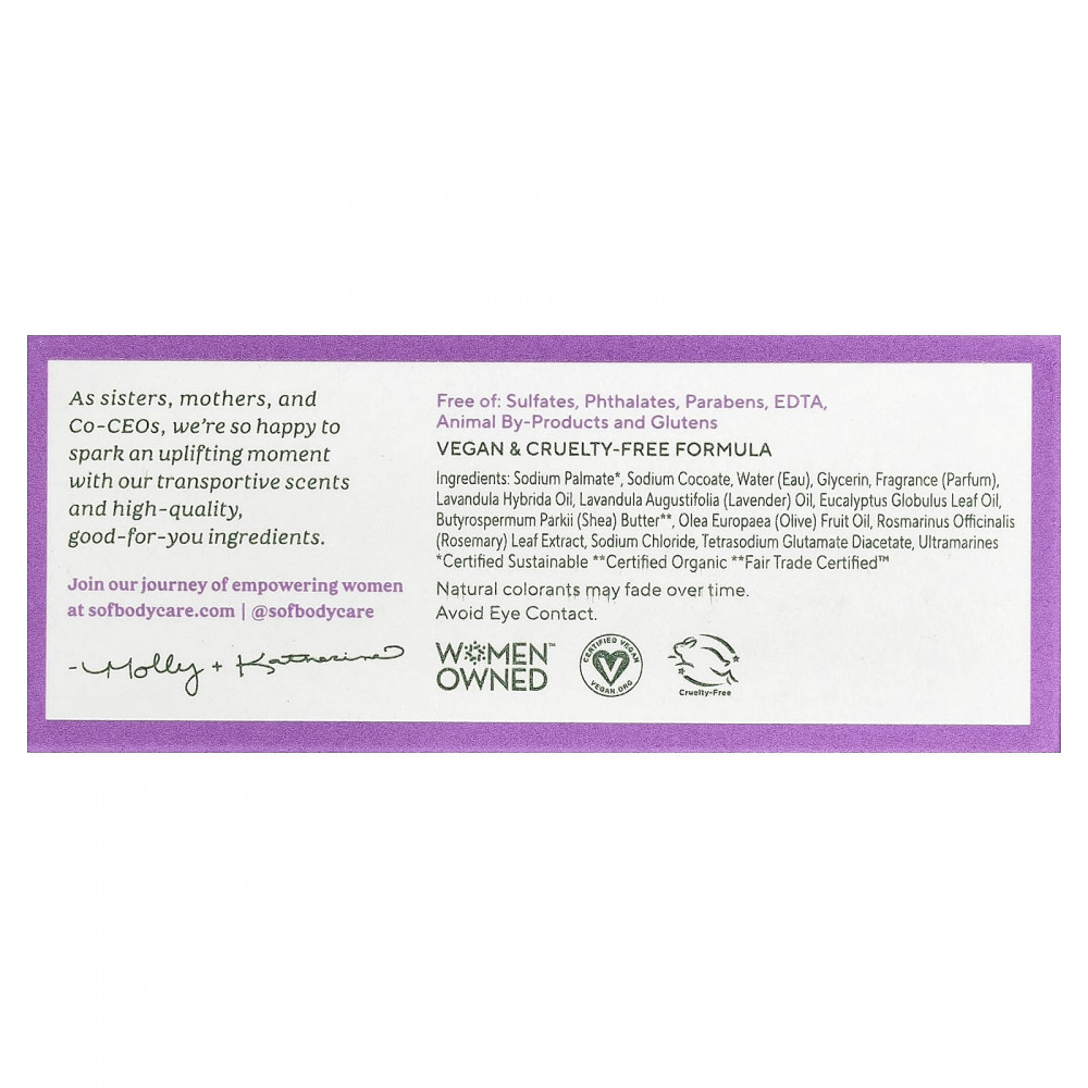 Найдите время и для себя. Используйте ультраувлажняющую пену с успокаивающим ароматом для очищения всего тела. Наше фирменное кусковое мыло — растительный продукт с длительным эффектом, который делает кожу мягкой и нежной.