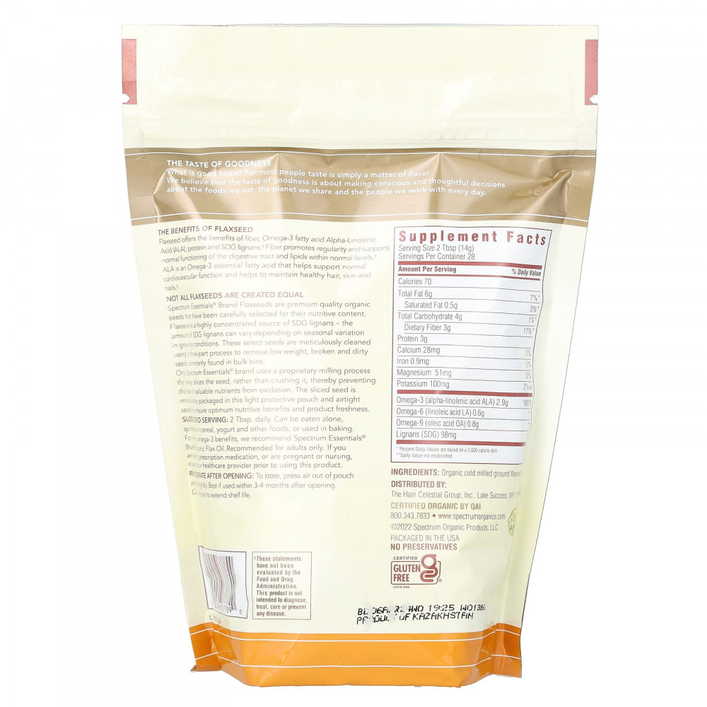 Семена льна от бренда Spectrum Essentials® — это органические семена премиального качества, которые были тщательно отобраны по содержанию питательных веществ. Льняное семя является высококонцентрированным источником лигнанов СДГ. Количество лигнанов СДГ может меняться в зависимости от сезонных изменений условий выращивания. Эти отборные семена тщательно очищаются с использованием процесса, состоящего из трех этапов. Для удаления низкого веса, поврежденных и грязных семян, которые обычно встречаются в контейнерах.
