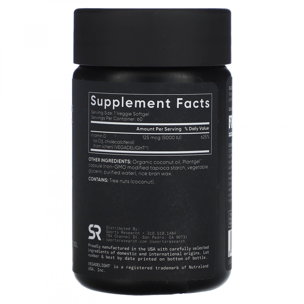 | Витамин D (в виде D3, холекальциферола) (из лишайника) (VEGADELIGHT®) | 125 мкг (5000 МЕ) | 625% |
