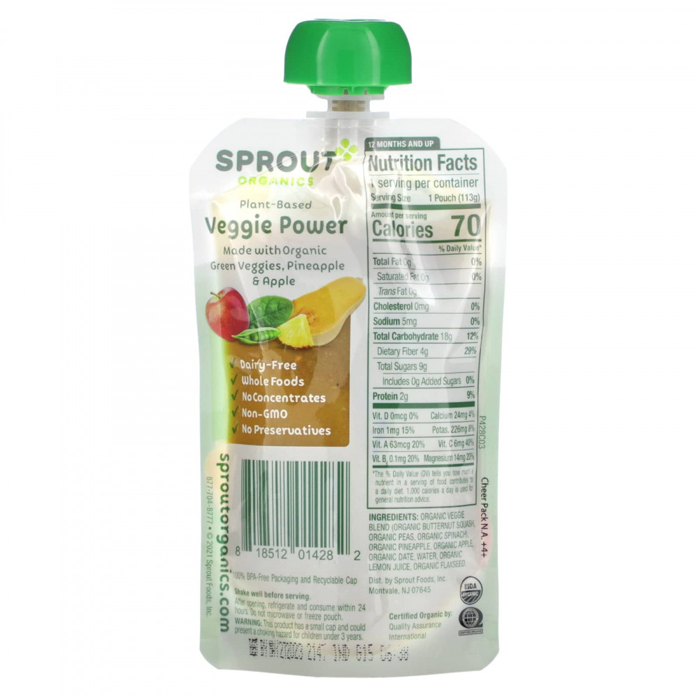 Органические пакетики Sprout Veggie Power ™ для малышей - это вкусный и удобный способ включить больше овощей в рацион вашего малыша. В каждом пакетике используется только вкусная смесь овощей и фруктов. В каждом пакетике содержится полная порция овощей. Малыши научатся любить свои овощи с различными вкусными блюдами!