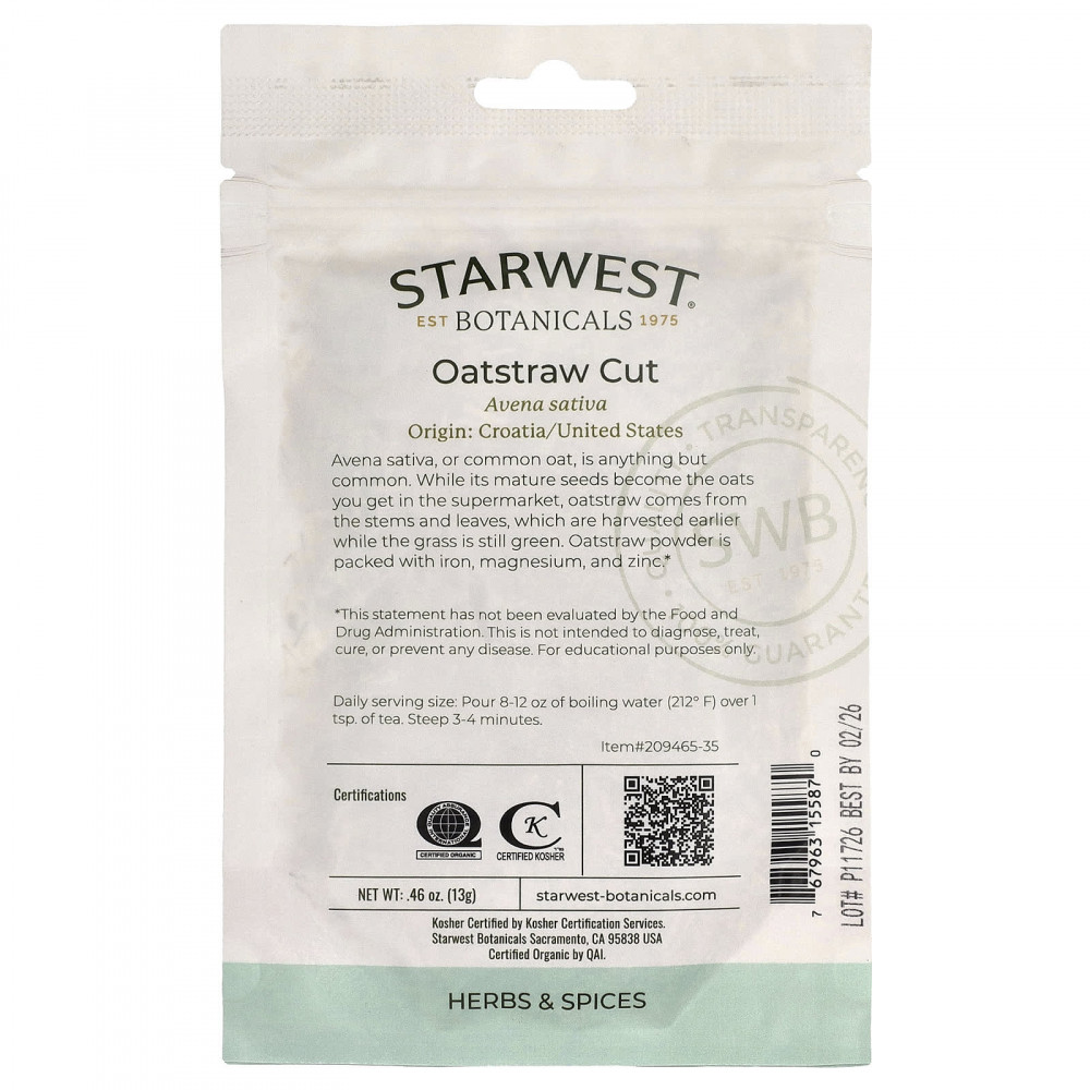 Avena sativa, или овес обыкновенный, встречается нечасто. В то время как его зрелые семена превращаются в овес, который вы покупаете в супермаркете, овсянку получают из стеблей и листьев, которые собирают раньше, пока трава еще зеленая. Порошок из овсянки богат железом, магнием и цинком.