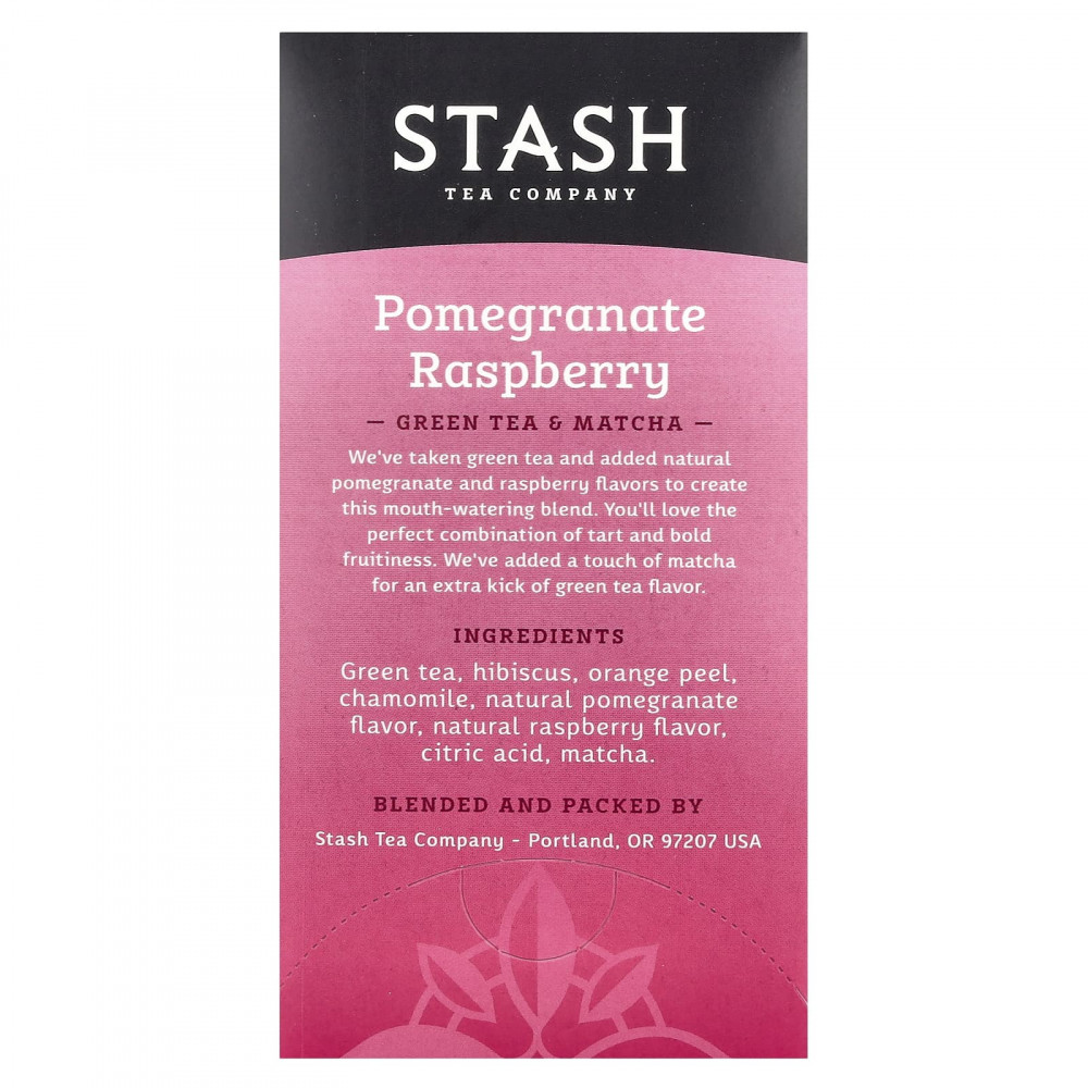 Мы взяли зеленый чай и добавили натуральные ароматизаторы «Гранат» и «Малина», чтобы создать эту аппетитную смесь. Вам понравится идеальное сочетание терпкой и яркой фруктовой нотки. Мы добавили немного матча для придания дополнительного вкуса зеленого чая.