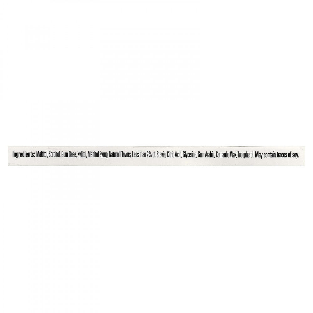 Мальтит, сорбитол, жевательная основа, ксилитол, мальтитный сироп, натуральные ароматизаторы, менее 2% стевии, лимонная кислота, глицерин, аравийская камедь, карнаубский воск, токоферол.