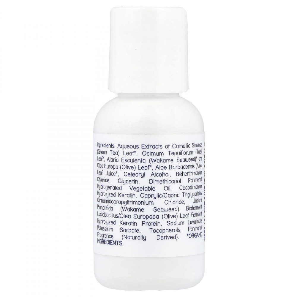 Водные экстракты листьев зеленого чая (Camellia sinensis) *, лист тулси (Ocimum tenuiflorum), водоросли вакаме (Alaria esculenta) * и листья оливкового дерева (Olea europa) *, сок листьев алоэ (Aloe barbadensis) *, цетеариловый спирт, бегентримония хлорид глицерин, гидрогенизированный растительный диметиконол пантенол, гидролизованный кератин, каприловые/каприновые триглицериды, масло, кокодимониум циннамидопропилтримониум ундария пиннатифида хлорид, (водоросли вакаме) биофермент, фермент из листьев оливкового дерева (Lactobacillus / Olea europaea), гидролизованный кератин, левулинат натрия, сорбат калия, токоферолы, пантенол, отдушка (натурального происхождения).
