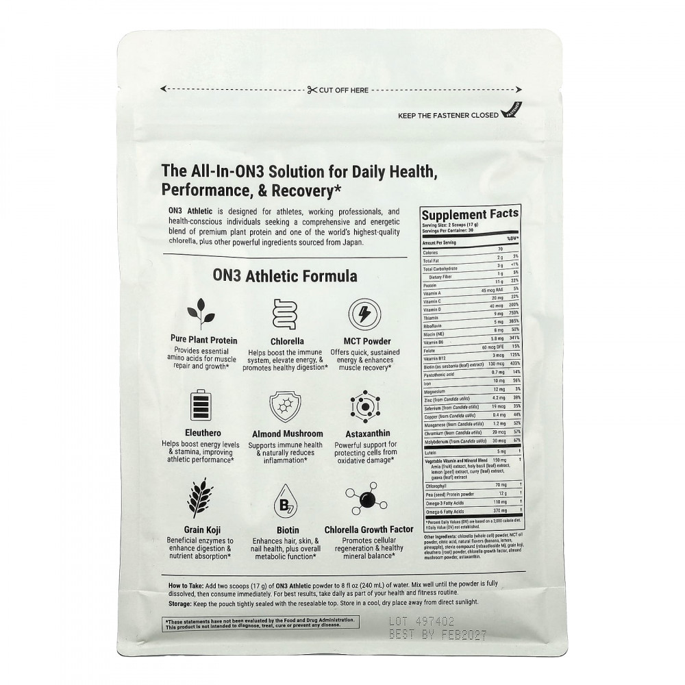 On3 Athletic разработан для спортсменов, действующих специалистов и людей, заботящихся о своем здоровье, которые ищут комплексную и энергичную смесь растительного белка премиального качества и хлореллы самого высокого качества в мире, а также других эффективных ингредиентов из японского сырья.
