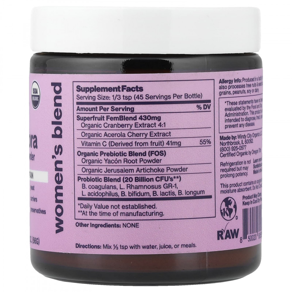 Потребности нашего организма в хорошем самочувствии у женщин коварные и меняются со временем. Наша формула разработана для поддержки всех аспектов женского микробиома, потому что все это взаимосвязано. Мы используем только натуральные ингредиенты, в том числе смесь из шести научно изученных штаммов пробиотиков и пребиотической клетчатки для поддержания здоровья кишечника. Кроме того, мы добавили экстракт витамина С из фруктов, ацеролы и клюквы для поддержания здоровья влагалища и мочевыводящих путей.