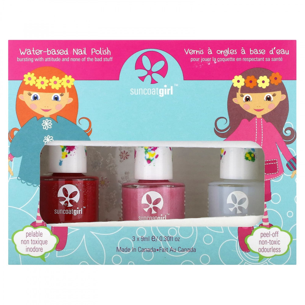 Содержимое упаковки: 3 отслаивающихся лака на водной основе (9 мл), 1 страница декалей.