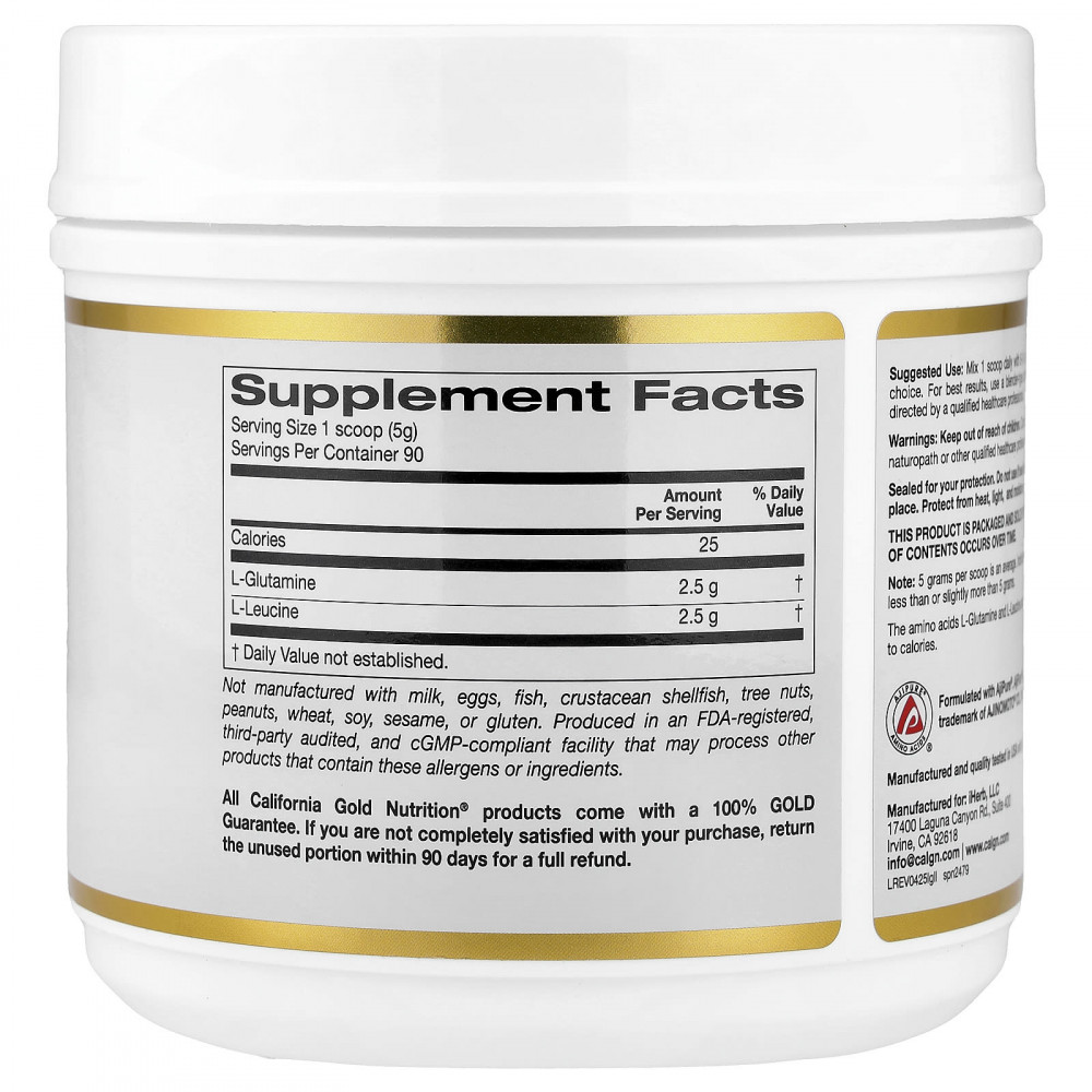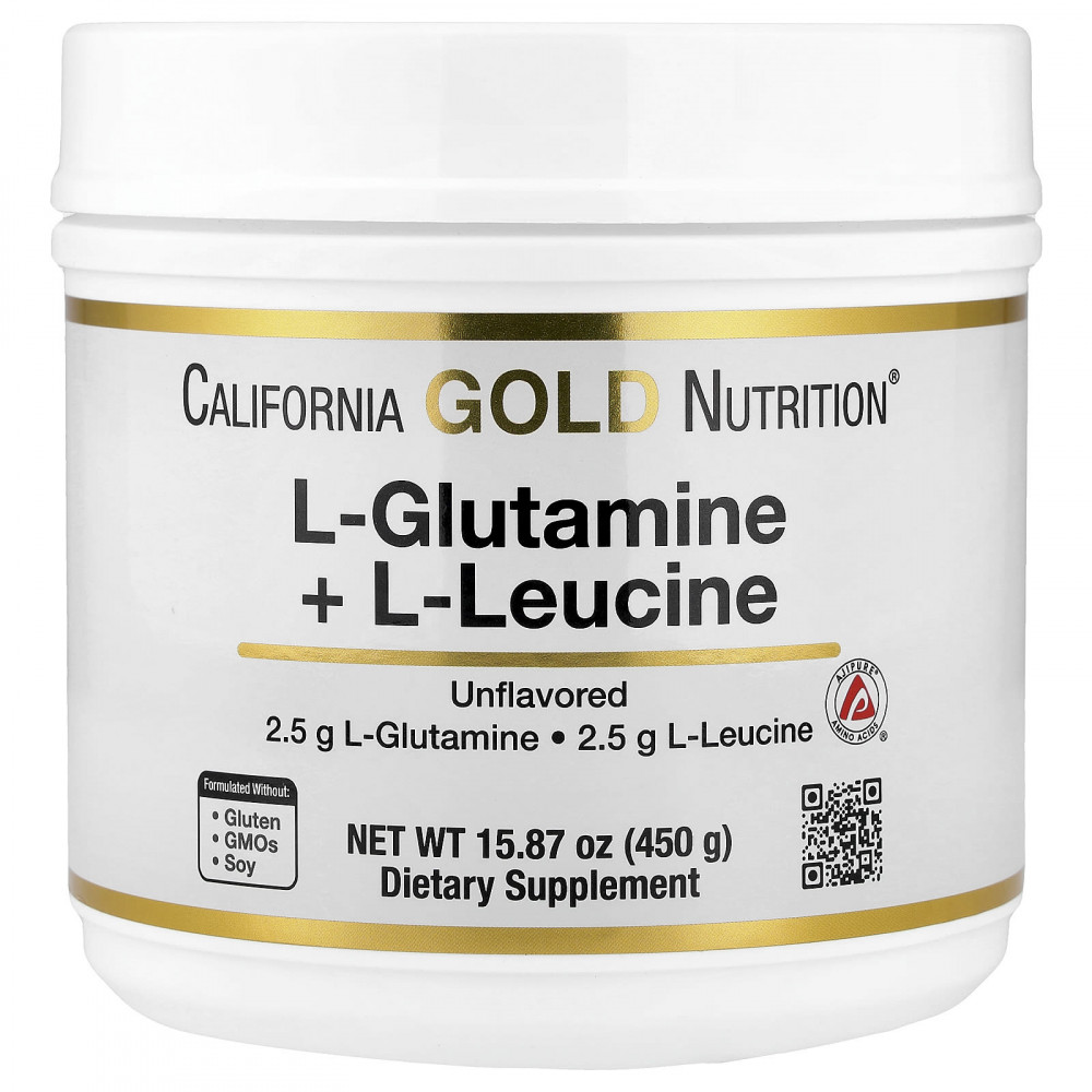 California Gold Nutrition® L-глютамин и L-лейцин, 5 г L-глютамин качества AjiPure® сочетается с L-лейцином в соотношении 1:1. Идеально подходит людям, которые хотят сохранять работоспособность, процесс восстановления и силу мышц*. Эти аминокислоты премиального качества в L-форме поддерживают выносливость мышц, синтез мышечного белка и общее здоровье мышц*. Порошок с нейтральным вкусом можно быстро добавить в любой напиток.
